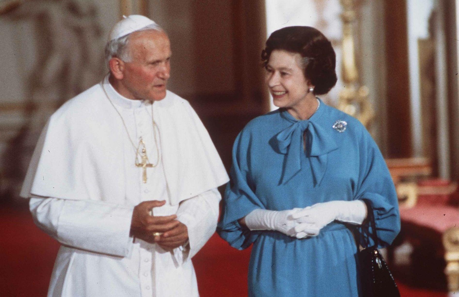 Elizabeth II est la véritable artisane du rapprochement entre le Saint-Siège et le Royaume-Uni. En 1951, alors qu’elle n’est que princesse, elle est reçue par Pie XII qui souhaite recevoir les vainqueurs de la Seconde guerre mondiale. Au cours de son règne, elle rencontra ensuite quatre papes, recevant même deux d’entre eux en visite d’Etat en Grande-Bretagne. Mais c’est bien avec Jean-Paul II que la reine a tissé les relations les plus étroites. Tous deux sont très attachés au discours interreligieux et c’est dans ce contexte qu’elle est reçue à deux reprises par le pape polonais et qu’elle l’invite à Londres en 1982. Cette visite d’Etat est historique : pour la première fois de l’histoire un pape traverse la Manche. Jean-Paul II invite ensuite l’archevêque de Canterbury à une journée de dialogue entre les religions en 1986 à Assise. Jamais autant de représentants de religions différentes ne s’étaient rassembler dans un même lieu. Aux funérailles de Jean-Paul II, la souveraine est représentée par le prince de Galles. Jusqu’ici, les monarques anglais étaient les grands absents de cet événement international pour raisons religieuses.